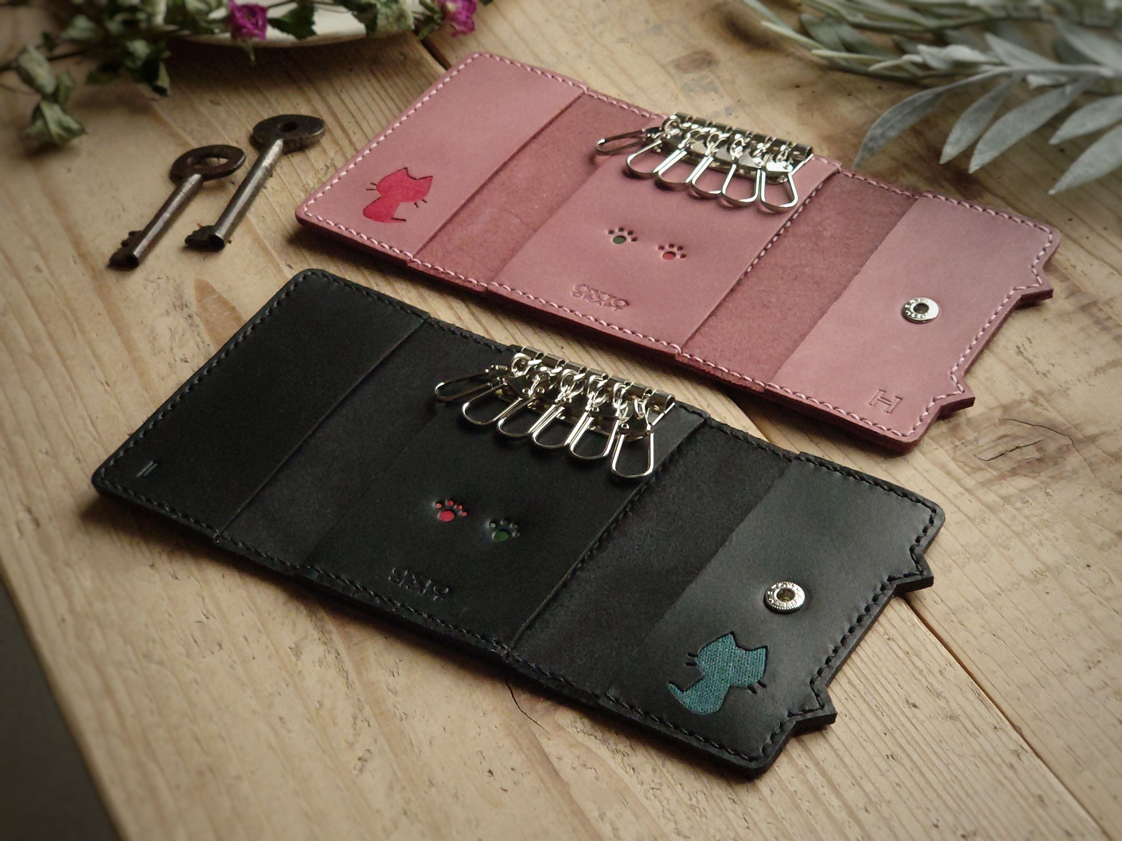 【特注オーダー】ペアキーケース(猫耳型・カードポケット付)オーダーメイド制作