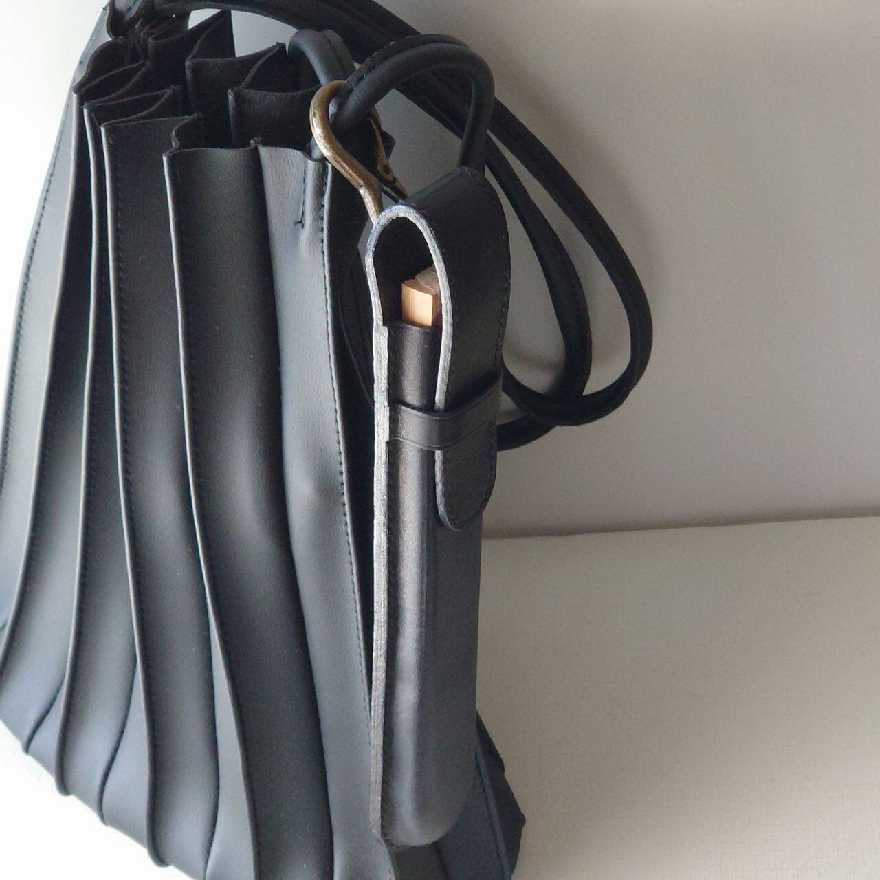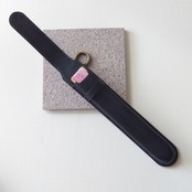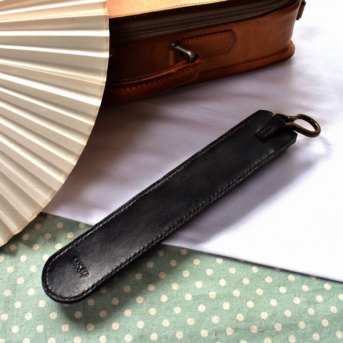 【アウトレット】※訳アリ品【黒革の扇子ケース(カラビナ付)】絞り加工 1点もの