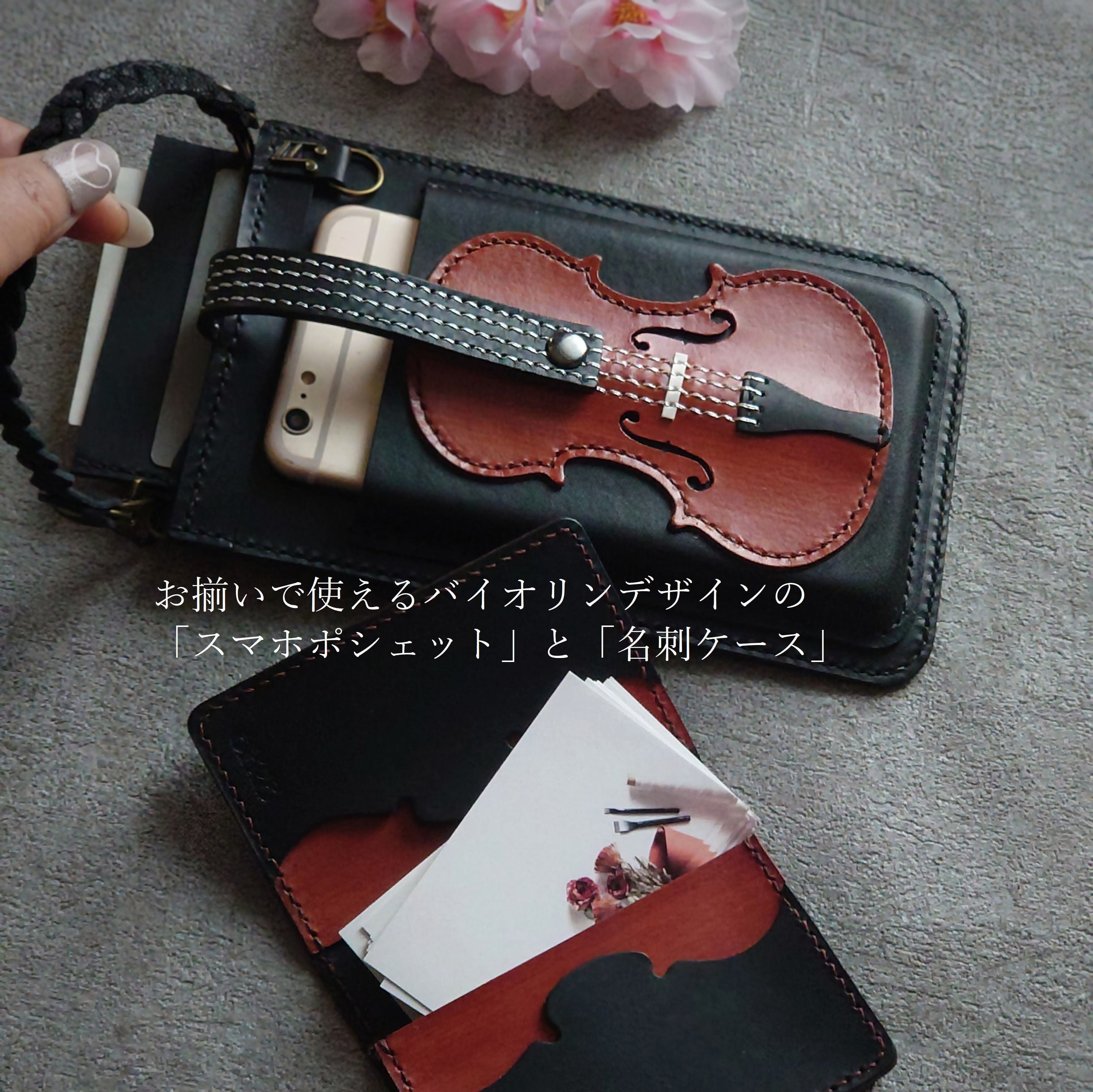 Hさま専用 ■バイオリンスマホポシェット&名刺ケースセット(特別仕様)
