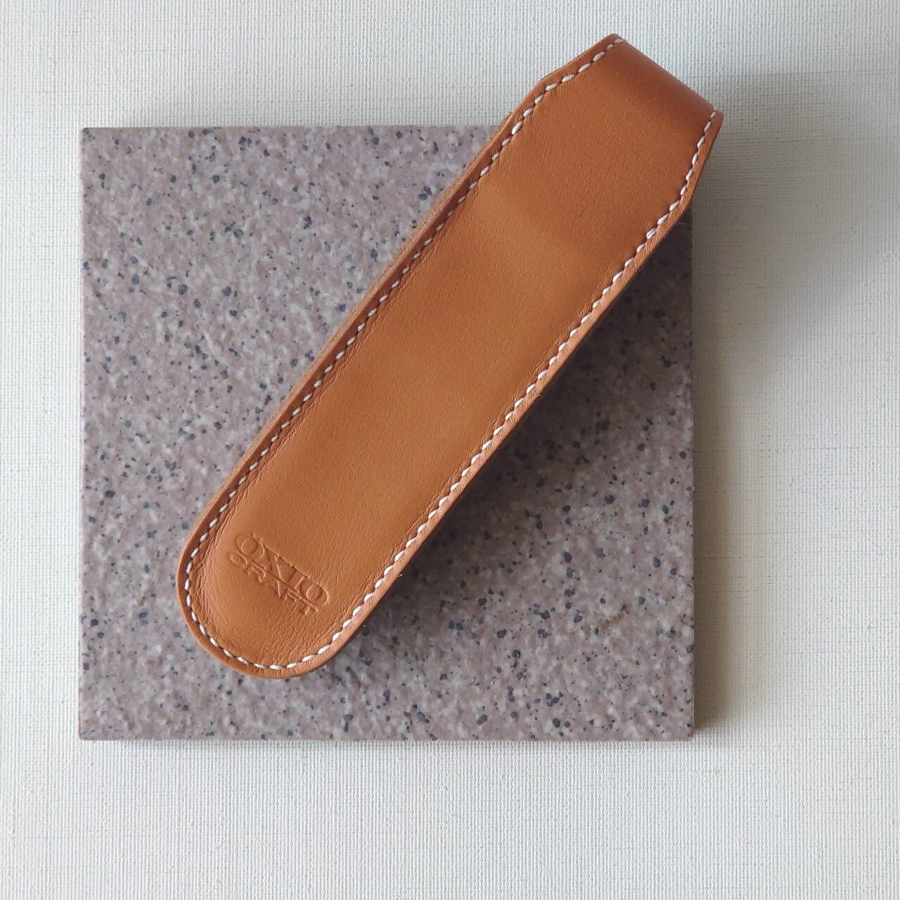 キャメル革で制作したドームペンケースです。職人が手で絞り加工を施し、